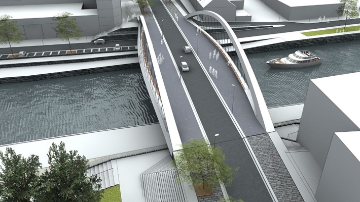 verzorgt de architectonische vormgeving voor een nieuw sluiscomplex in het Vlaamse Harelbeke. Het bureau ontwerpt drie onderdelen van de sluis en twee bruggen.