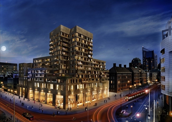 Op de hoek van Spui en Kalvermarkt te Den Haag is op 2 april de bouw gestart van winkel- en woontoren Amadeus. Het gebouw is ontworpen door Jacques de Brouwer van