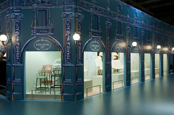 Kartell, elk jaar met een uitbundige stand aanwezig, presenteerde de collectie dit jaar in een soort 19e eeuwse passage. De wandelaars langs de ‘etalages’ zagen nieuwe ontwerpen van onder andere Philippe Starck, Tokujin Yoshioka, Patricia Urquiola, Pierro Lissoni en Nendo. Het was niet de enige producent overigens, die weer tal van grote namen had ingeschakeld voor de nieuwe collectie.