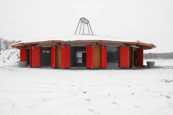 ontworpen kinderboerderij Engbergen opgeleverd. Het cirkelvormige gebouw, dat ook dient als Natuur-Milieu-Educatiecentrum, is ontworpen met oog voor licht, lucht en uitzicht.