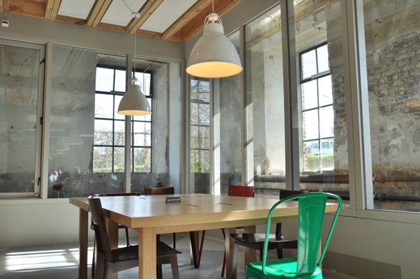 Om het oude karakter van het gebouw te behouden, is een glazen doos in het gebouw geplaatst. In de glazen doos heeft SATIJNplus in totaal circa 170 werkplekken gerealiseerd, verspreid over meerdere verdiepingen.