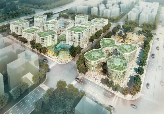 Het 110.000 vierkante meter grote kantorenprogramma is deels ondergebracht in tien torens van vijf tot negen verdiepingen hoog, die flexibel aan bedrijven van verschillende formaten kunnen worden verhuurd. Op het noordelijk plot komen vier torens die aan de bovenkant met elkaar verbonden zijn en hierdoor op een bloem lijken, het ‘Flower Building’.