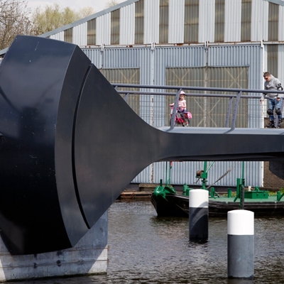 ipv Delft heeft, in lijn met de wens van het stadsdeel, een slanke en transparante horizontale brug ontworpen. De composieten randelementen, die bijdragen aan de strakke belijning, gaan vloeiend over in het contragewicht. De composieten kap voor de val – het beweegbare deel – is achttien meter lang en bestaat uit een stuk.