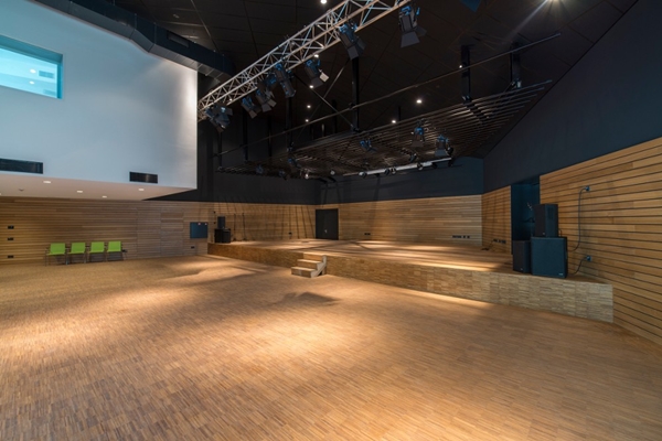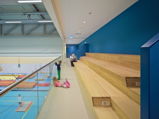 Vanuit het Sassche centrum loopt een route tot in het centrale hart, ‘het venster’ van het gebouwensemble. Door een transparante glazen plint lijkt het venster door te lopen naar binnen. Hier manifesteert het zich als een grote vide die twee lagen hoog reikt. Doordat verschillende voorzieningen, waaronder de sportkantine, aan het venster grenzen, nodigt de ruimte gebruikers uit tot ontmoeting, aldus Atelier PRO. Sommige functies zijn met elkaar gecombineerd zoals de ontmoetingsruimte van het wijkcentrum en de leeszaal van de bibliotheek. De scholen hebben een eigen plein en entree.