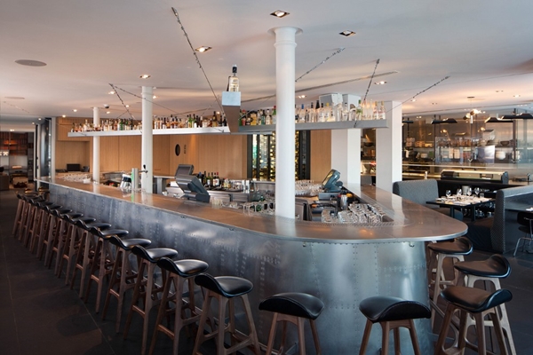 Het restaurant, toegankelijk voor zowel hotel- als andere gasten, wordt gedomineerd door een grote centrale bar. Dit bareiland is geheel bekleed met stukken hergebruikt zink. De vloer is voorzien van gezandstraald natuursteen. Beide zorgen voor een ruwe uitstraling, waarmee de architecten uitdrukking willen geven aan het Japanse 'Wabi-Sabi'.