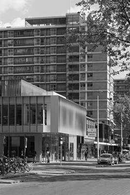 Het pand op de hoek van de Kruiskade en de Karel Doormanstraat is in de jaren vijftig gebouwd als de moderne tearoom Martin’s, maar heeft in loop der decennia door verbouwingen zijn identiteit verloren. Claus en Kaan Architecten heeft het gebouw zijn bijzonderheid teruggegeven met een, zoals het bureau het zelf omschrijft, “ingetogen en tegelijkertijd gedecideerd architectonische beeld”. Op de bestaande kolommen van het bouwwerk zijn in een evenwichtige maatverhouding in drie bouwlagen doosvormen gestapeld. De volumes verschillen onderling subtiel in materiaal, raamopeningen, kleur en andere bewerkingen, waardoor de stapeling een eenheid in verscheidenheid is.