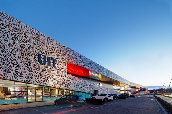 Vervolgens kunnen de per auto gearriveerde bezoekers in het winkelgebied afdalen via het hartgebouw. Dit trekt op het parkeerdak de aandacht door de zeventien gebogen stalen kolommen van 25 meter hoog. De kolommen, voorzien van zilverkleurige banden uit lasergesneden panelen, vormen een herkenningspunt dat ook vanaf de snelweg goed is te zien. Dezelfde lasergesneden panelen zijn toegepast als bekleding van de rode gevel. De signing van winkels is geïntegreerd in de architectuur. Dit zorgt voor een herkenbare en eenduidige uitstraling, waarbij alle huurders goed kunnen worden gezien. Een groot deel van de bestaande winkels zijn in het nieuwe plan ingepast en bleef geopend tijdens de gefaseerde bouwwerkzaamheden. VVKH verwierf de ontwerpopdracht voor het meubelplein te Son en Breugel, nabij Eindhoven, nadat er een wedstrijd voor de herontwikkeling was uitgeschreven.