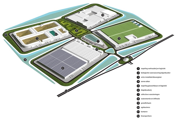 Het maken van een masterplan voor Greenport Venlo was in 2009 de eerste opdracht voor het bureau waarbij het sluiten van kringlopen op het gebied van water, energie en reststoffen centraal stond. Een werkgebied van 5000 hectare. Juist door die enorme omvang, en Venlo’s ambitie om het volgens het C2C-principe te ontwikkelen, lagen er substantiële kansen.