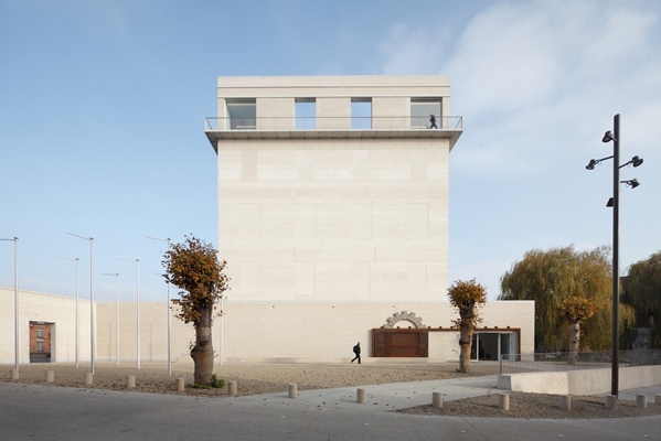 Het museum is gebouwd op de locatie van het voormalige arresthuis, aan de andere zijde van het plein. De geruĆÆneerde muur van het arresthuis is aangevuld met een nieuwe muur, die voorts aansluit op de resten van de oude Mechelse stadsmuur. Deze nieuwe muur is gedeeltelijk de onderbouw van het museum. Het museumgebouw wordt gevormd door een voorhofmuur: een ommuring met erin en gedeeltelijk erop een gebouw. Tussen de kazerne en de voorhofmuur van het museum wordt het plein verhard. Zo worden beide gebouwen op elkaar betrokken en krijgt de stad een herkenbare openbare ruimte.