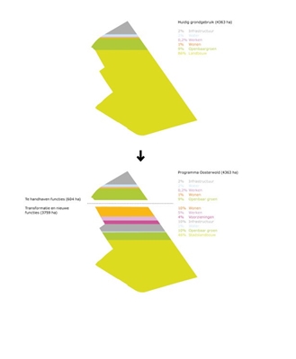 . In plaats van blauwdrukken zouden de initiatieven van potentiële bewoners en ondernemers – binnen een aantal kaders – vormgeven aan de inrichting van het gebied. De initiatiefnemers zouden daarbij ook zelf zorgdragen voor hun eigen energie, landbouw, infrastructuur en groen. In de Structuurvisie Oosterwold zijn de kaders en de spelregels voor de ontwikkeling vastgelegd.