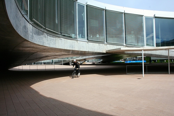Voor dit bijzondere gebouw neem je de Ausfahrt Basel/Münchenstein. Voor hun doen hebben Jacques Herzog en Pierre de Meuron hier een ingetogen gebouw neergezet. Omdat ze excelleren in sculpturale vormgeving, heb je het gevoel een bijna heilig icoon te betreden –