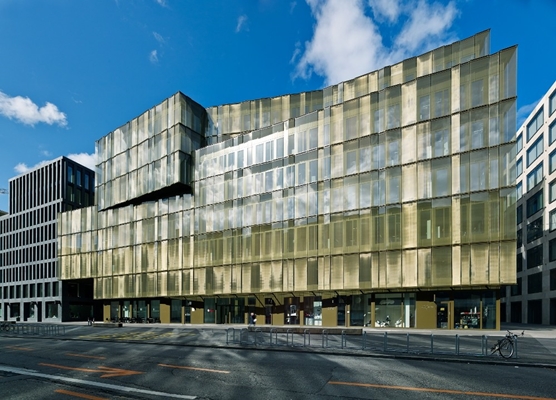 Lagerstrasse Haus, ontworpen door Annette Gigon/Mike Guyer Architekten, valt op door het sterk afwisselende gevelbeeld. Op de begane grond en eerste verdieping is de gevel teruggeplaatst, zodat een overdekte entree is ontstaan. De hogere verdiepingen worden gekenmerkt door terug- en vooruitspringende delen. De dubbele gebouwhuid bestaat uit een glasgevel met verschillend vensterritme en een buitenste, geventileerde glaswand, voorzien van een metallic textiel. Hiervan zijn de vensters onder verschillende hoeken geplaatst met het oog op het creëren van ventilatiesleuven. De kantoorvloeren in het Lagerstrasse Haus zijn zoveel mogelijk vrij van kolommen gehouden, net als de vloeren in het Freischützgasse Haus, dat is ontworpen door David Chipperfield Architects. De strikte vloerindeling wordt weerspiegeld in de strenge gevelindeling. Dit wordt iets verzacht doordat de verdiepinghoge raampartijen in tegengestelde richtingen meanderen. Daarnaast is een gaaspatroon met gevarieerde maasgrootte geprint op de buitenste glasgevel.