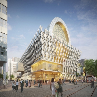 Het ontwerp voor het Spuiforum van Neutelings Riedijk Architecten (visualisatie: A2STUDIO)