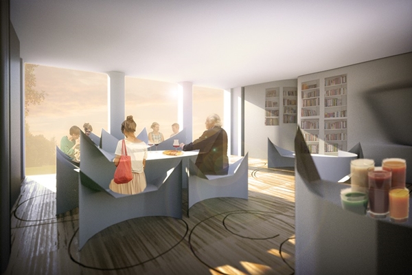 betreft niet ten koste gaan van de ruimtelijke kwaliteit. Studenten van de onderzoeksgroep hebben een appartement voor bestaande gebouwen ontwikkeld dat zich aanpast aan veranderend gebruik gedurende de dag. In precies dezelfde ruimte waar de bewoner ’s nachts slaapt, kan hij overdag werken en eten.
