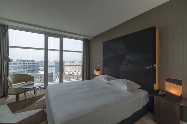 Bakers vertelt dat het hotelontwerp nagenoeg zonder grote wijzigingen is uitgevoerd. Volgens hem is dat mede te danken aan de Franse hotelonderneming Accor, die niet heeft getornd aan de indeling en de situering van ruimtes. De onderneming meldde zich vier jaar geleden als mogelijke exploitant. “We wilden bij de eerste drie bouwlagen grote vides die de diverse functies zouden verbinden. De bouwvergunning is op de eisen van Accor nog gewijzigd, maar alle vides bleven gelukkig overeind. Accor heeft niet elke ruimte willen vullen met kamers. Dat is bijzonder voor een zakenhotel, waarbij gewerkt wordt met managementcontracten en het rendement voor beleggers zit in de kamerbezetting.”