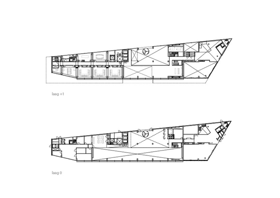 Van Gameren en Mastenbroek maakten sneden in het volume, onder meer in het verlengde van bestaande straten, zodat het IJ vanuit verschillende hoeken zichtbaar zou blijven. Juist de zichtsneden zijn, als leegten tussen de bouwdelen, bepalend geworden voor het ontwerp. Het maakte de opgave interessant, maar ook heel complex, aldus Bakers. Het volume werd opgedeeld in zes delen in nauwe samenhang. “Als ik er een verdieping bijwilde, zou dat consequenties hebben voor een ander gebouw”, legt Bakers uit.