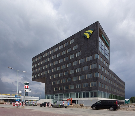 Op het kantorenpark van Rotterdam The Hague Airport is het gebouw Cornerstone voor