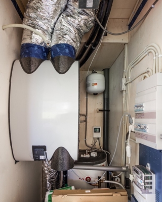 De vakantiewoning is uitgevoerd als ‘passiefhuis ‘, met isolatie en drievoudig glas. Voor het verwarmen en koelen van de ventilatielucht is een grondbuis toegepast. Warm water wordt geleverd dankzij zonnecollectoren en elektriciteit voor koken en verwarmen wordt opgewekt met zonnepanelen, die elders op het terrein zijn geplaatst.