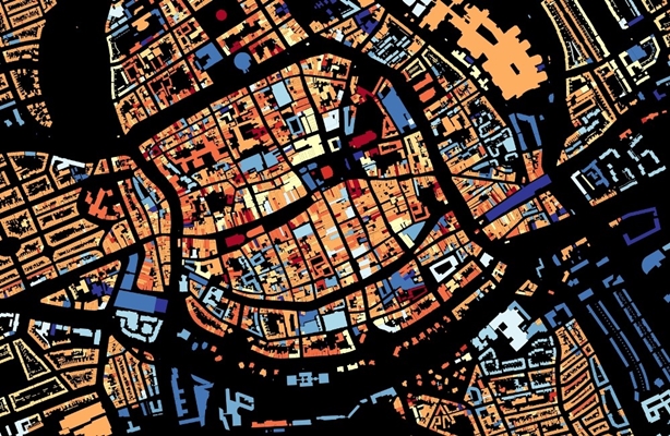 Dat levert fascinerende beelden op. Net als bij nachtelijke luchtfoto’s is duidelijk te zien waar bebouwing is en waar leegte, hoe steden en dorpen concentrische zijn gebouwd of langs een (water)weg liggen. Bij deze ‘ouderdomskaart’ kun je echter ook zien hoe bebouwing is gegroeid.