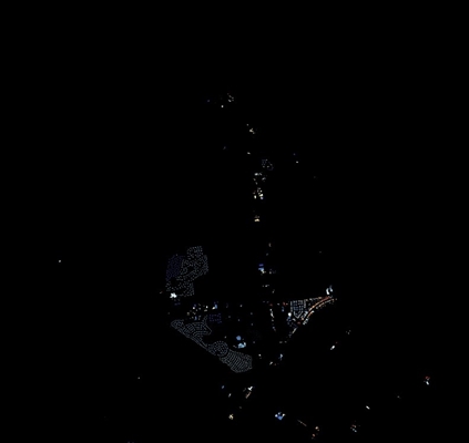 heeft een boeiende, interactieve kaart van Nederland gemaakt. Kleurige vlakjes tegen een zwarte achtergrond geven de ouderdom van bebouwing weer.