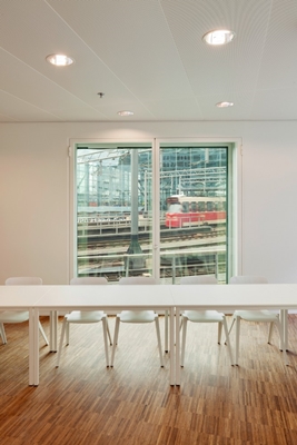 Direct naast Den Haag Centraal is afgelopen anderhalf jaar een 24.500 vierkante meter groot universiteits- en woongebouw verrezen naar ontwerp van
