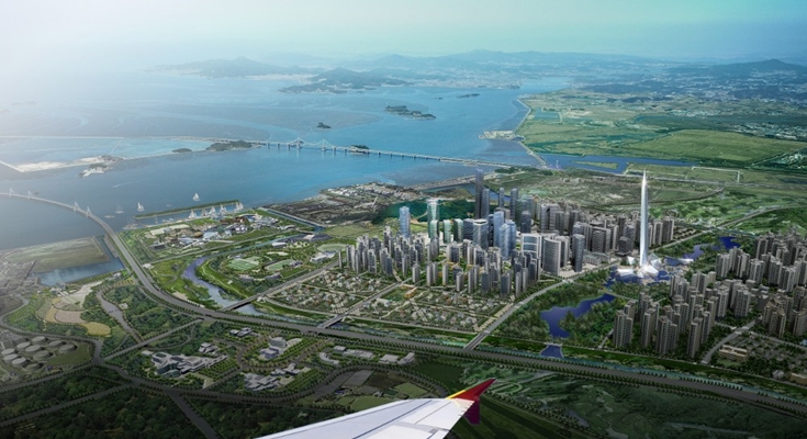 Ironisch is dat de hoge onzichtbare wolkenkrabber bij het internationale vliegveld Incheon komt te staan, net buiten Seoul. De bouw moet volgend jaar worden afgerond.