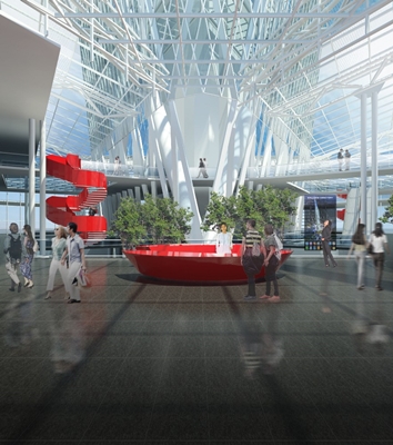 De wolkenkrabber, ontworpen door GDS Architects (uit de Verenigde Staten), toont zijn omgeving door middel van ledschermen. Zo moet een onzichtbaarheidseffect worden bereikt, meldt