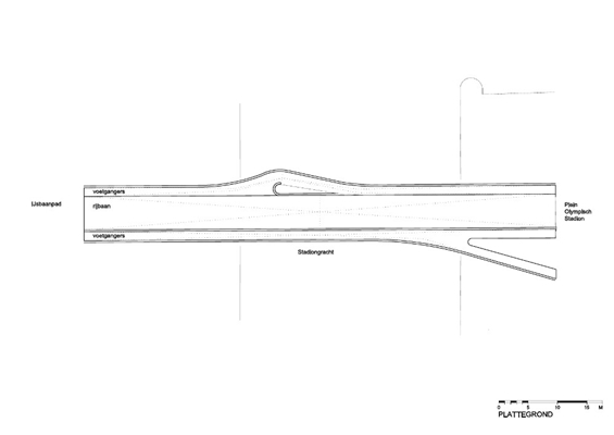 De Na-Druk-Geluk-Brug maakt onderdeel uit van de vernieuwde openbare ruimte rondom het Olympisch Stadion in Amsterdam.