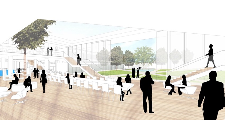 Het door archipelago ontworpen gebouw wordt omringd door groen, een conditie waarvan gebruik is gemaakt door veel uitzicht te creëren. Ook is op het maaiveld een colonnade gerealiseerd, die de overgang van binnen naar buiten verzacht.
