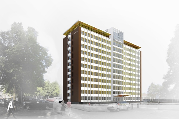 Het twaalf verdiepingen tellend gebouw omvat ongeveer 12.000 vierkante meter met omringende parkeergelegenheid. Op de begane grond en de dakverdieping komen kleinschalige bedrijfsruimten, in de overige lagen worden studentenwoningen gerealiseerd.