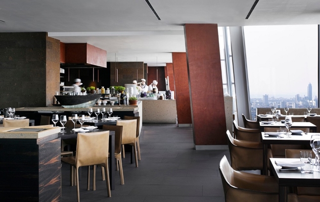 verdieping van het Londense gebouw The Shard is het Oblix Restaurant geopend. Gasten betreden via de keuken een serene ruimte met geometrische vormen in natuurlijke materialen, ontworpen door