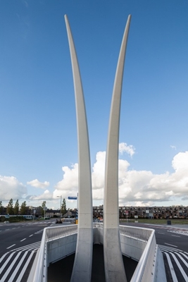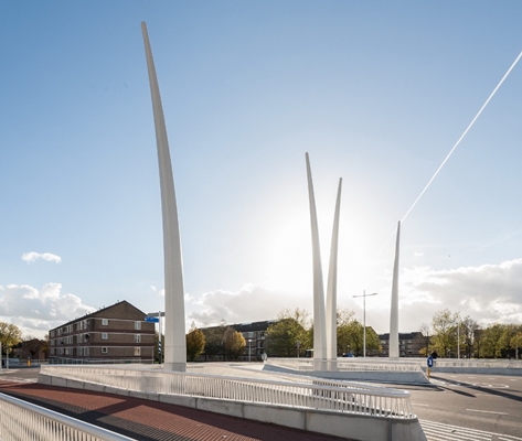 , dat de constructie heeft ontworpen, wilde meer creëren dan alleen de klassieke ontvlechting van verkeersstromen die de kruising feitelijk is. De pylonen verrijzen uit de pijlers van het viaduct, waarmee een relatie wordt gelegd tussen de wereld boven en onder het wegdek.
