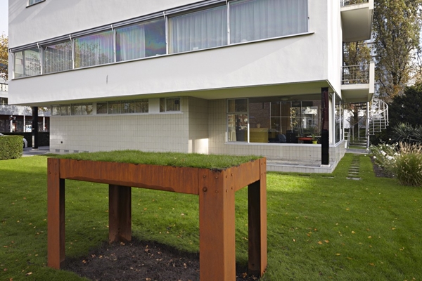 Wie nog geen weet heeft van Het Nieuwe Bouwen, volgens welke Huis Sonneveld is ontworpen, hoeft maar naar dit bouwwerk te kijken om de uitgangspunten te snappen. De aan de andere kant van de tuin staande Grastafel verplaatst een deel van de tuin naar de eerste verdieping, waar zich ook het woongedeelte van het huis bevindt.