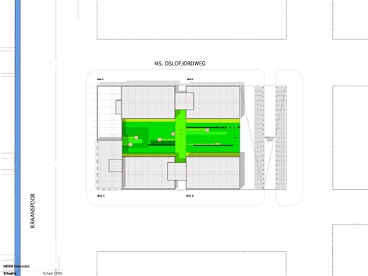 gebouwd. Pal naast het Kraanspoor verrijst het uit meerdere volumes bestaande Nieuwdok. De volumes verspringen qua hoogte en verschillen in massa en materialisatie.