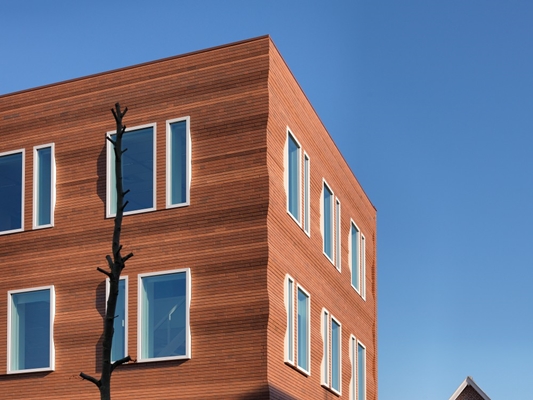 Opvallend zijn echter vooral de golvingen in het buitenspouwblad. Speciaal voor deze gebouwen is een nieuwe baksteen ontwikkeld. Volgens de architecten creëert dit een modern sprankelende gevel, die tevens refereert aan ambachtelijke kwaliteiten. Diederendirrix past de gevelprofilering toe als een decoratieve toevoeging aan de gehele gevel boven de plint.
