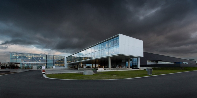 Het kantoorgebouw bestaat uit een overwegend wit hoofdvolume met twee langgerekte vleugels, die boven het maaiveld zijn getild. De vleugels hebben grote glasgevels, waarachter de boutloze staalconstructie zichtbaar is. De enorme stalen vakwerken van tien bij tachtig meter maken overspanningen van 36 meter mogelijk, waardoor expeditieverkeer onder de kantoren door kan rijden.