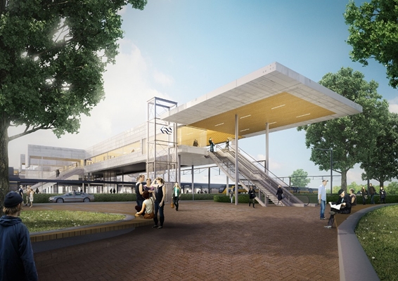 “Het nieuwe station, een ruim opgezette en transparante traverse zal over de perrons heen gesitueerd worden. Bij de keuze voor materialen is gekeken naar een optimale combinatie van hoge kwaliteit en beperkt onderhoud.”
