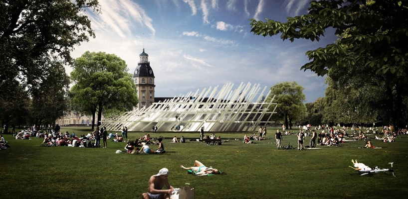 In het kader van de driehonderdste verjaardag van de stad Karlsruhe, wordt in het Schlosspark een tijdelijk paviljoen gebouwd.