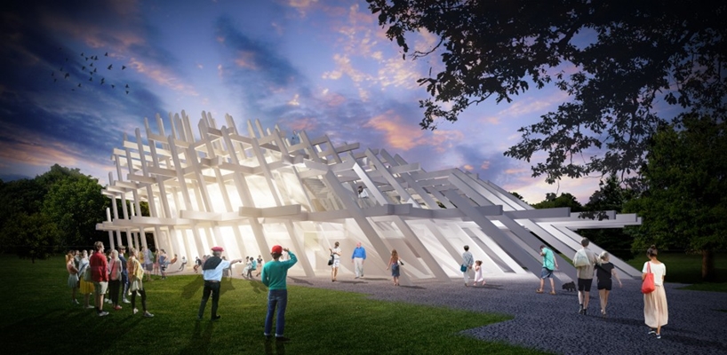 heeft een open constructie uit houten balken ontworpen.