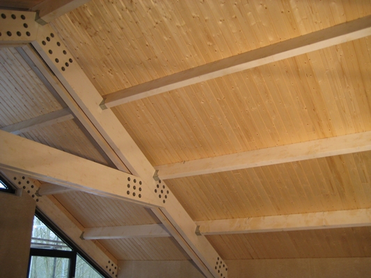 Dakelementen met vurenhouten schrootjes zichtzijde