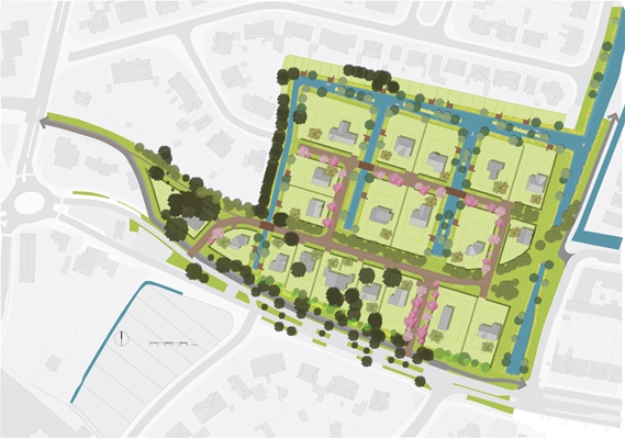 Het aanwezige water zorgt voor een “herkenbaar milieu met gebiedseigen beplanting, natuurlijke oevers en houten bruggetjes”. Ook een oude trambaan door het gebied wordt gebruikt in het ontwerp, als een vanzelfsprekende zonering in een waterrijk en een bosrijker woonomgeving.