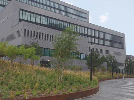 Tegelijkertijd is het gebied zwaar beveiligd. De beveiligingsmaatregelen zijn geïntegreerd in het ontwerp van de gebouwen en de buitenruimte door een intensieve samenwerking tussen architecten en de landschapsarchitecten. Door deze integrale aanpak is de sfeer ondanks het zeer hoge beveiligingsniveau vriendelijk en vrijgevig voor mens en dier, aldus DS.
