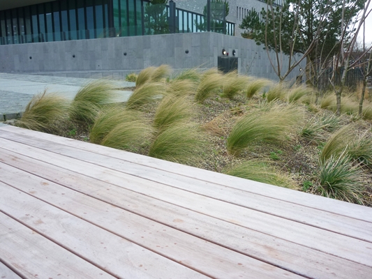 Tussen de harde gebouwen en op parkeergarages heeft DS een zacht glooiend duinlandschap gerealiseerd. De eigendomsgrenzen van alle instituten en de gemeente zijn vervaagd. Door het gebied loopt een wandelroute van natuursteen. De gebogen lijn verbindt het World Forum met het Vredespaleis. Het standbeeld van Nelson Mandela ‘loopt’ in de richting van het Vredespaleis. ‘s Nachts wordt de lijn verlicht door de rij lichtmasten.