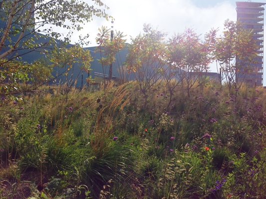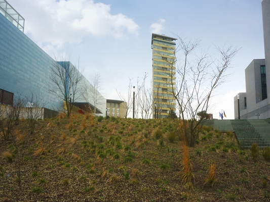 “Al ervaren veel mensen het tot nog toe niet zo, het gebied tussen de gebouwen is publieke ruimte”, zegt Renske van Veen. “Daarom wilden we er een zachte openbare ruimte van maken. Niet alleen voor de mensen die er werken; ook bewoners van de aangrenzende buurten en bezoekers van de musea kunnen er wandelen in een duinlandschap.”