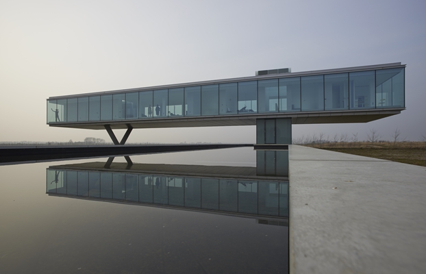 staat op een gelijknamig landgoed op Noord-Beveland. Het bouwwerk bestaat uit een ondergronds gedeelte met onder meer een garage en kantoor en een glazen doos met het woongedeelte die rust op een stalen frame. Vorig jaar werd het project onderscheiden met een ARC13 Award in de categorie architectuur.