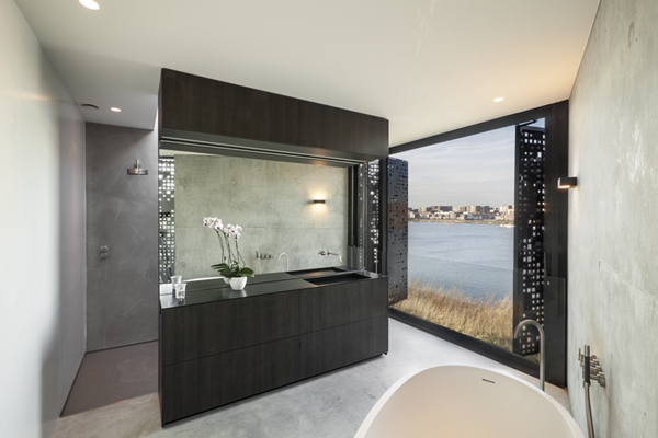 Het architectenbureau heeft tot op het niveau van details doorontworpen, “van de roestvrijstalen deurklink tot het vier millimeter dikke rvs aanrechtblad, van de wastafelmeubels tot het doucheputje” aldus Studioninedots. Dat gaf het bureau veel ontwerpplezier en het eindresultaat een uitstraling van sereniteit.