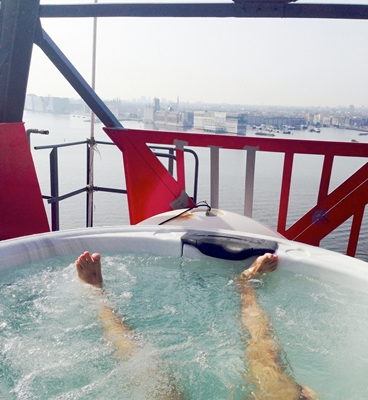 op de NDSM-werf in Amsterdam geopend. In een gerestaureerde kraan zijn drie hotelkamers en een tv-studio gebouwd. Ook kunnen gasten op vijftig meter hoogte in een jacuzzi van het uitzicht genieten.