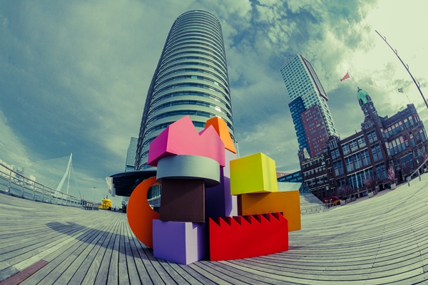 “Het middelpunt van de Vertical Village-tentoonstelling in Hamburg was een vier meter hoge sculptuur gemaakt van tachtig foam-objecten. Na afloop van de tentoonstelling werden de objecten tijdelijk bij ons op kantoor geplaatst en spontaan door medewerkers en gasten tot onderdeel van het kantoorleven gemaakt”, zegt MVRDV.