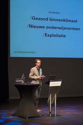 werd het thema ‘Scholen’ van allerlei kanten belicht. Op het ontwerpen van een gezond binnenklimaat, het accommoderen van nieuwe onderwijsvormen en het rekening houden met de exploitatie van gebouwen werd daarbij extra ingezoomd. De dag kende drie keynotes die gegeven werden door Dorte Kristensen (atelier PRO), Marlies Rohmer (Marlies Rohmer architecten) en Ellen van der Wal (Mecanoo).