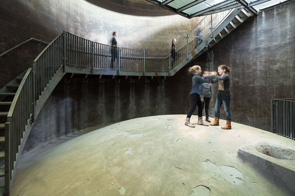 “Bij de klim naar boven worden alle zintuigen geprikkeld, men ervaart de duizelingwekkende ruimtelijkheid van de schacht, de duisternis van de lekvloer en het reservoir en de galm van de holle betonnen ruimten. De industriële sfeer van de oorspronkelijke toren wordt geaccentueerd en ervaarbaar gemaakt door de nieuwe ingrepen”, zegt de